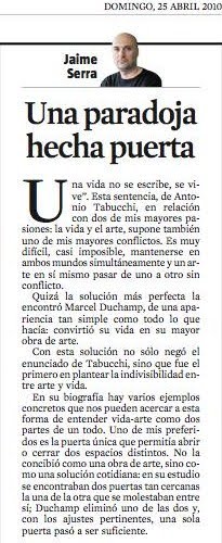 Me quedo asomado un rato. Viendo correr el agua. Duchamp (y yo pensando por él) lo hubiera visto como una gruta vaginal. Pienso: caída, antierección. (Éste, en realidad, es el genuino balcón del coño.)
