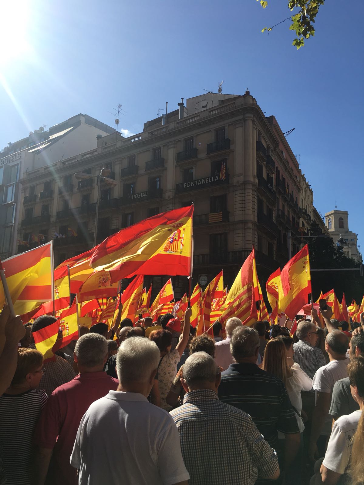 Hubo un detalle en el Ave que iba de Madrid a Barcelona el domingo 8 de octubre temprano. El tren iba lleno de gente con banderas para la manifestación. Parecía que algo había cambiado, que las banderas iban volviéndose sustanciales. Yo estaba por ellas, iba con ellas, me manifestaría junto a ellas, pero algo me incomodaba: la previsión de que se perdería ligereza. Entonces alguien dijo de broma, señalando uno de los televisores del vagón: “¡Que nos pongan el Nodo!”. Y reímos. Nos reímos saludablemente de nosotros mismos. Nos manteníamos en el mismo espacio mental.
